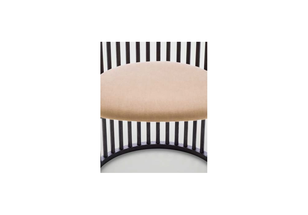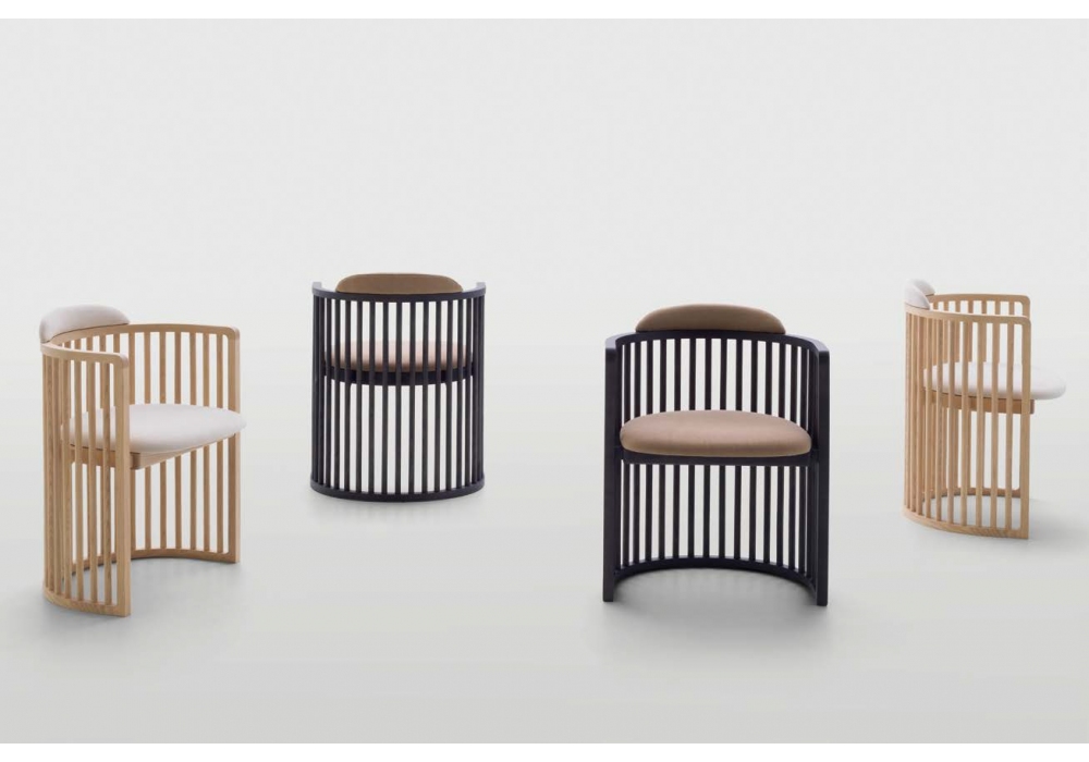 Palù conçue par Raffaella Mangiarotti pour Pianca est une chaise réalisée avec un canal massif ou une structure en noyer teinté. Revêtement en tissu, cuir ou cuir synthétique, non déhoussable.