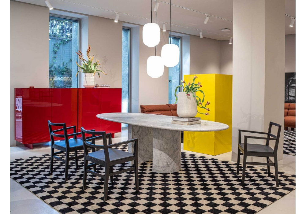 Classica conçue par Piero Lissoni pour Cappellini est une chaise avec ou sans accoudoirs, avec structure en bois massif et revêtement fixe en tissu ou cuir.