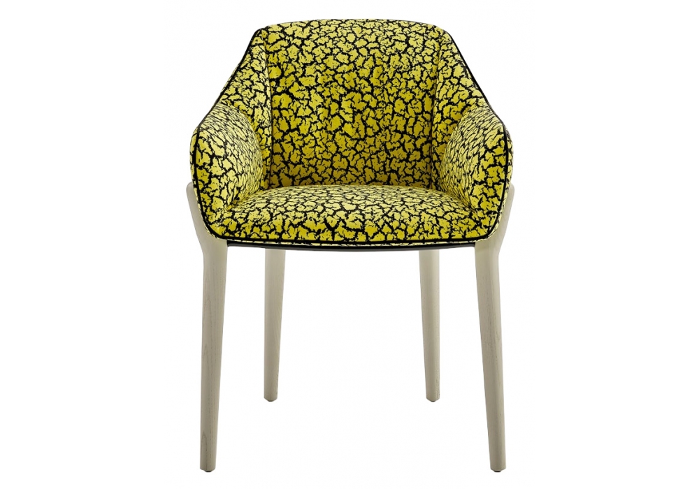 Nido conçue par Rafa García pour Sancal est une chaise avec pieds en bois, assise et dossier rembourrés recouverts de tissu ou de cuir. Disponible en différentes finitions.