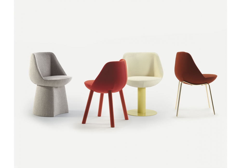 Magnum conçue par EstudiHac pour Sancal est une chaise entièrement recouverte de tissu, disponible en différentes finitions.