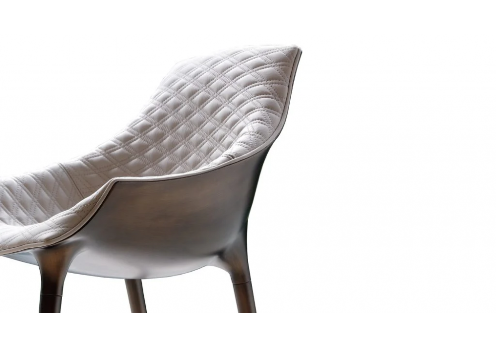 Milady conçue par Marco Cocco pour Reflex Angelo, est une chaise avec coque et pieds en polypropylène. Intérieur rembourré et revêtu de cuir avec passepoil assorti. Matelassage EMERALD en option.