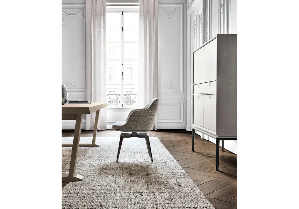 Caratos conçu par Antonio Citterio pour Maxalto est une chaise pivotante avec une structure en aluminium peint et un revêtement en différents tissus ou cuirs.