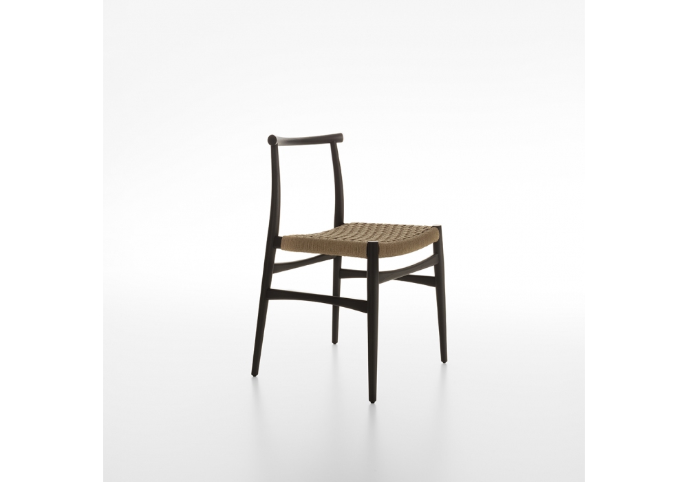 Wabi conçue par Giuseppe Bavuso pour Rimadesio est une chaise avec une structure en bois massif et une assise en corde ou en cuir. Disponible en différentes finitions.