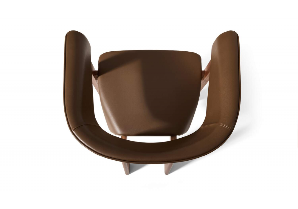 560 Back-Wing conçue par Patricia Urquiola pour Cassina est une chaise avec accoudoirs réalisée avec une structure en bois de frêne massif et une assise et un dossier rembourrés avec revêtement en tissu ou en cuir.