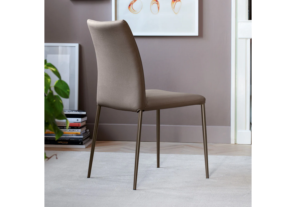 Atlas conçue par Connubia est une chaise avec une structure en métal peint, une assise et un dossier en tissu ou en cuir. Disponible en différentes finitions et versions.
