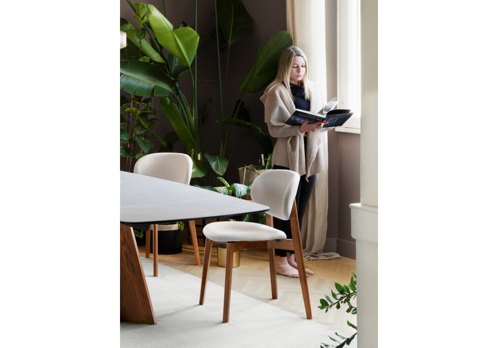 Eide Soft conçue par Connubia est une chaise avec structure en bois de hêtre, assise et dossier rembourrés recouverts de tissu. Disponible en différentes finitions.
