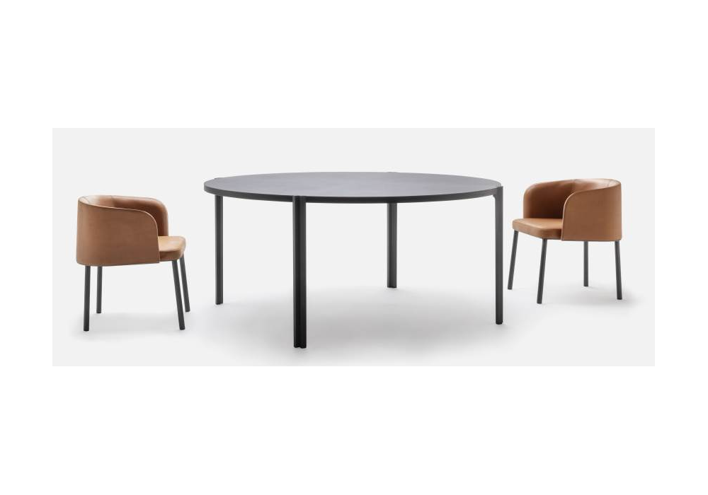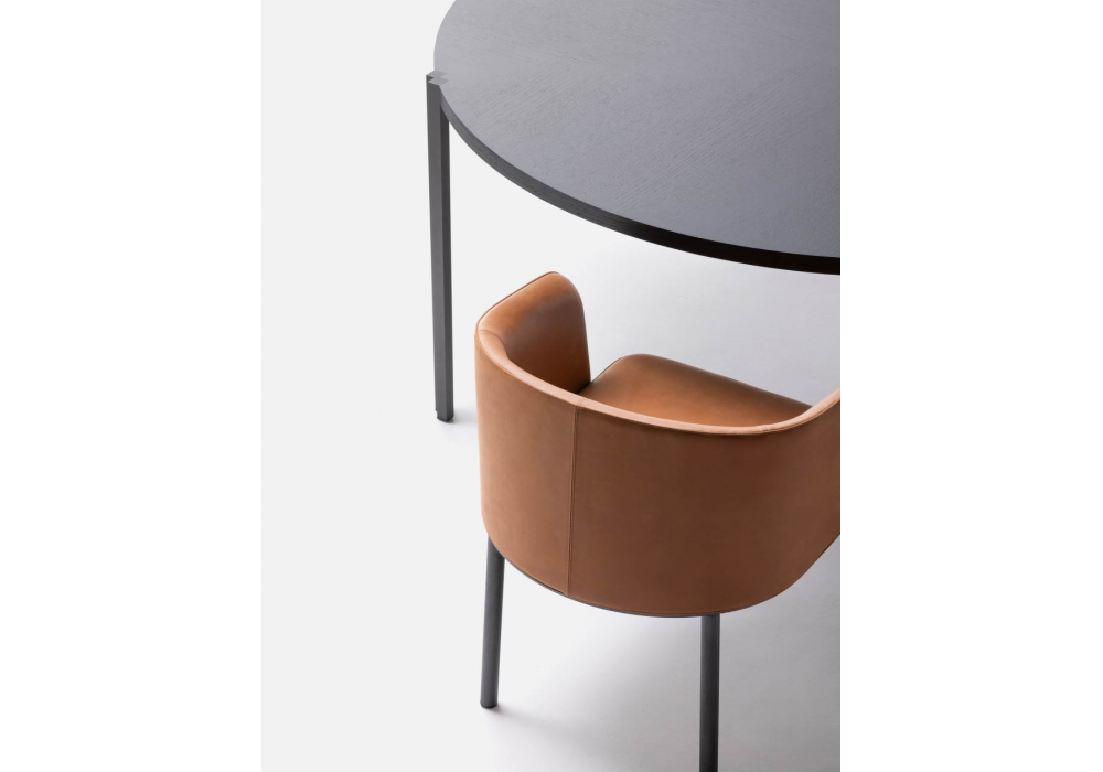 Jam conçue par Piero Lissoni pour Living Divani est une chaise avec des pieds en métal peint et un revêtement en différents tissus ou cuirs.