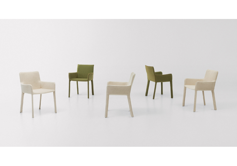 Mia conçue par Luca Erba pour Paola Lenti, est une chaise dotée d'une structure interne en acier inoxydable AISI 316 et d'embouts en plastique. Le revêtement, qui recouvre l'ensemble de la structure, est en tissu déhoussable grâce à des fermetures éclair dissimulées.