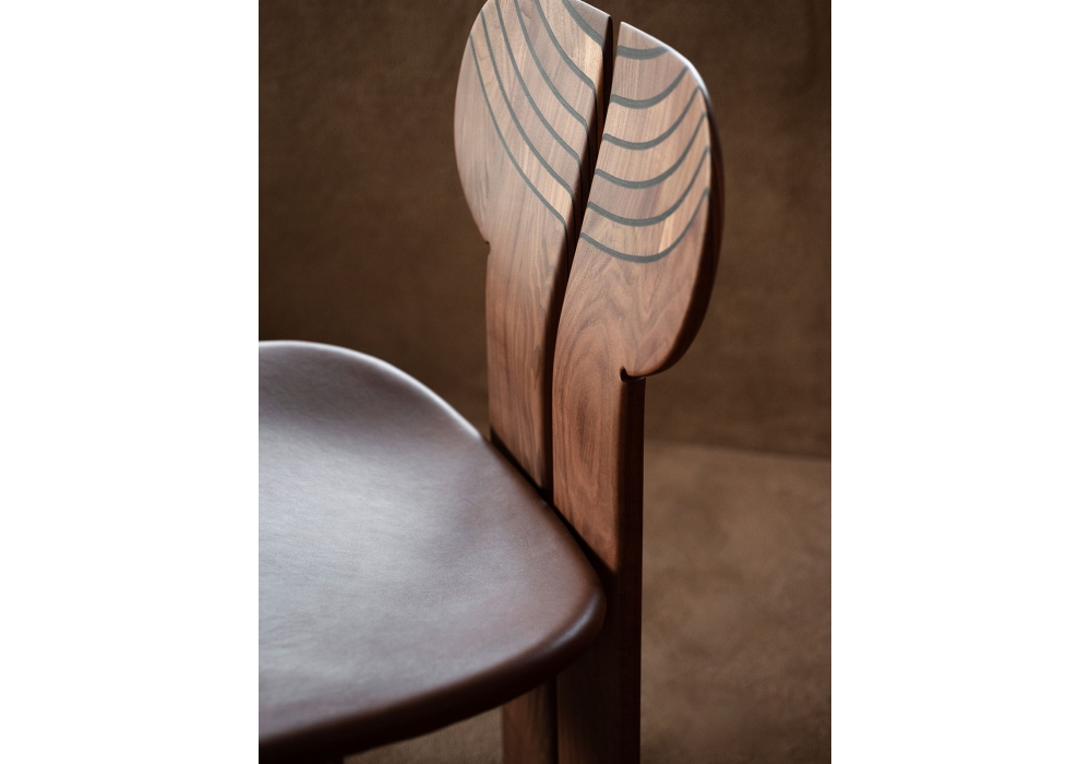 Africa conçue par Afra & Tobia Scarpa pour Tacchini est une chaise réalisée avec une structure en bois de frêne teinté noyer ou noyer Canaletto et une assise recouverte de tissu ou de cuir.
