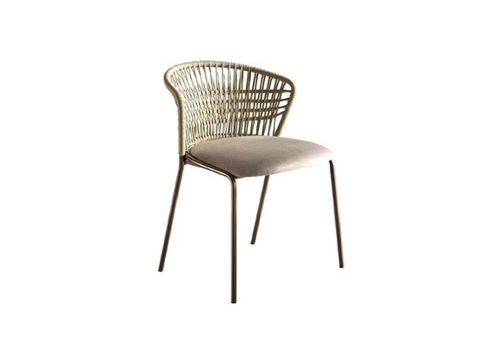 Soffio conçue par Riflessi est une chaise d'intérieur/extérieur dotée d'une structure en métal galvanisé et peint. Son assise est en contreplaqué avec sangles élastiques centrales et son rembourrage en mousse de polyuréthane est rembourré. Son dossier est tressé en corde polyester ignifuge et hydrofuge.