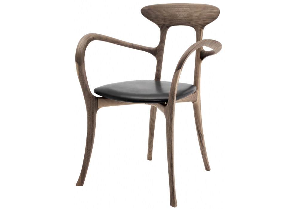 Ma Belle conçue par Roberto Lazzeroni par Ceccotti Collezioni est une chaise avec accoudoirs en noyer américain massif et assise en contreplaqué courbé rembourré.