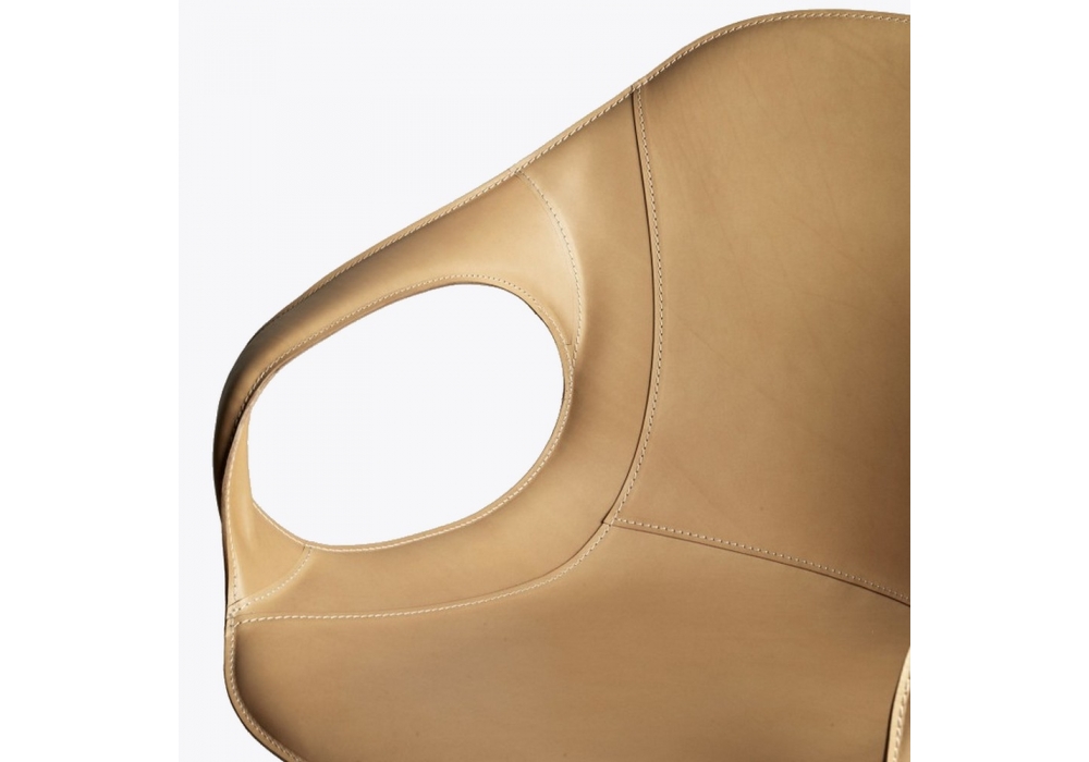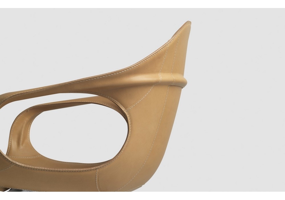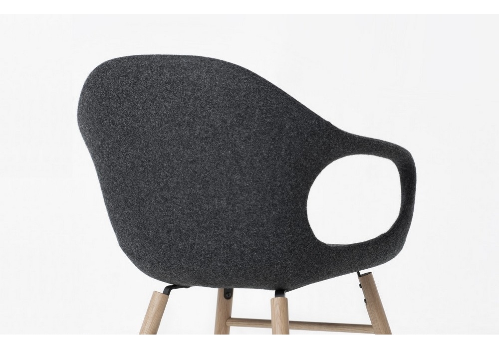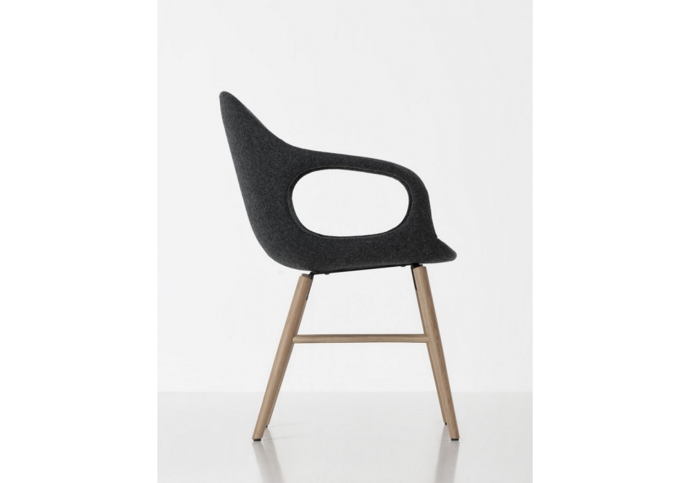 Elephant conçue par Eva Paster & Michael Geldmacher pour Kristalia est une chaise avec base en bois disponible en plusieurs finitions et coque en polyuréthane avec revêtement en cuir, cuir "pleine fleur" ou tissu.