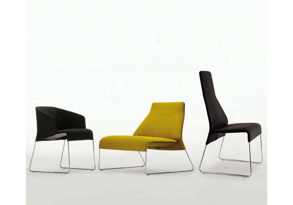 Lazy '05 conçue par Patricia Urquiola pour B&B Italia est une chaise avec coque en thermoplastique, revêtement en polyuréthane moulé et fibre de polyester. Base en acier tréfilé. Revêtement en différents tissus ou cuirs.