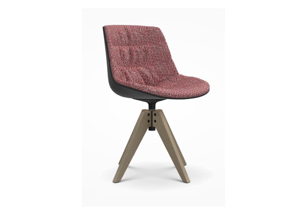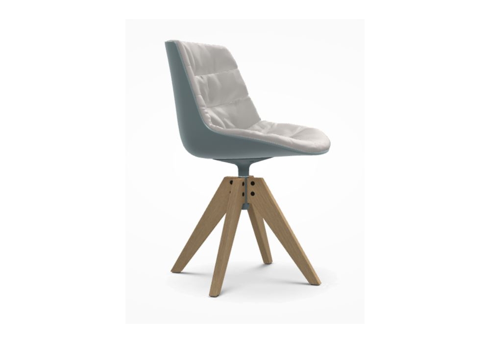 Flow Chair Rovere conçue par Jean Marie Massaud pour MDF Italia est une chaise rembourrée avec coque et supports en différentes finitions combinées. Les pieds sont en chêne massif, de différentes couleurs. Rotatif à 360°. Disponible en 2 modèles.
