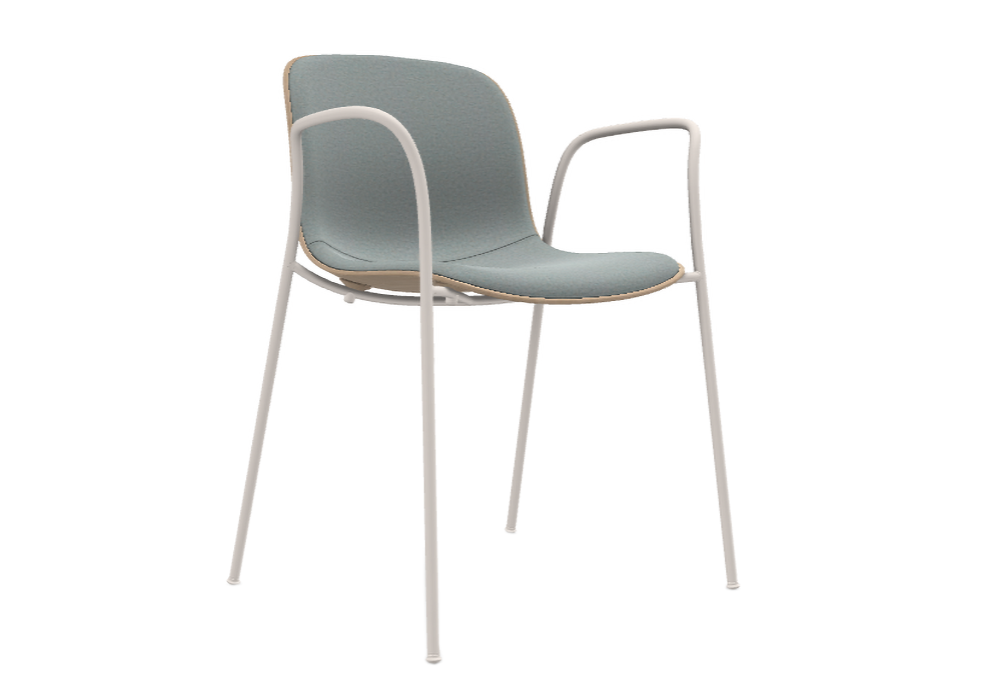 Troy Chair Fabic conçue par Marcel Wanders pour Magis est une chaise avec accoudoirs et façade revêtue en tissu Kvadrat ou en cuir. Structure en tube d'acier chromé ou peint et assise en polypropylène ou en contreplaqué de hêtre.
