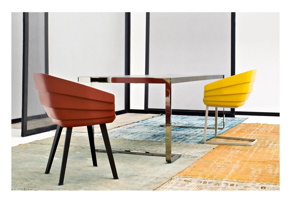 Rift conçue par Patricia Urquiola pour Moroso est une chaise cantilever avec coque structurelle intégrale moulée en polyuréthane et base cantilever en acier peint. Coussin d'assise en polyuréthane expansé en tissu Remix en différentes finitions.
