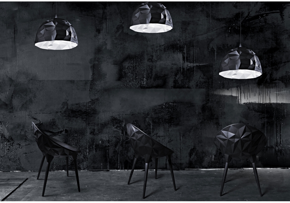 Rock is the chair designed by Diesel with Moroso. The Rock chair was inspired by the geometric structure of crystals and minerals, which occur naturally creating amazing, perfect shapes. It combines the visual impact and recognisability of its edges with its seats’ streamlined, ergonomic form. Shell in structural polyurethane, feet in beech and glides in nylon.