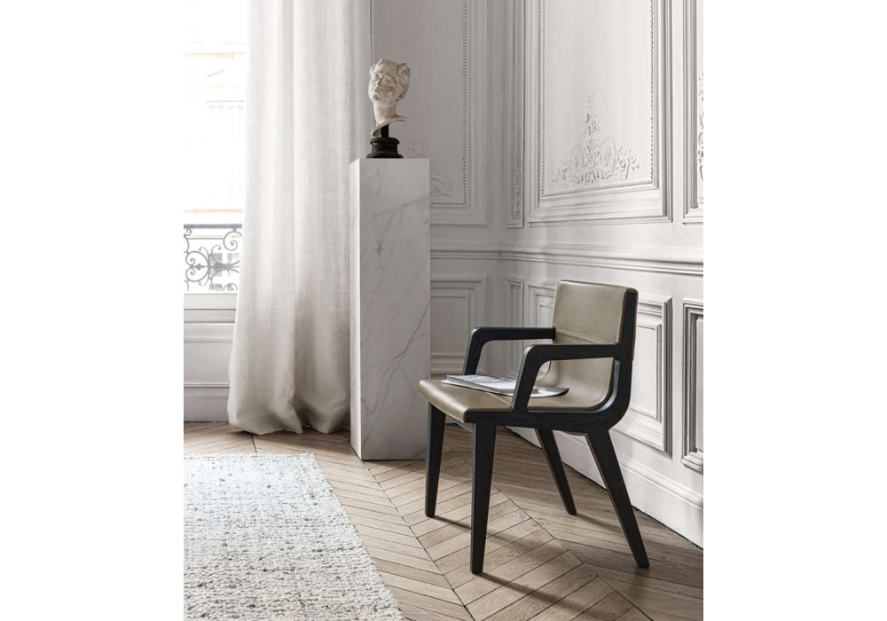 Acanto, conçue par Antonio Citterio pour Maxalto, est une chaise avec ou sans accoudoirs. Structure en bois massif disponible dans les finitions suivantes : chêne gris, chêne clair brossé, chêne noir brossé, chêne teinté fumé ou wengé naturel. Revêtement en tissu ou cuir.