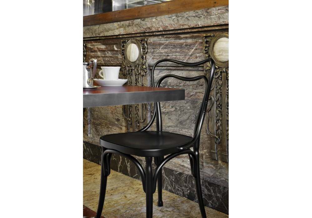 Loos Cafè conçue par Adolf Loos pour Gebrüder Thonet Vienna est une chaise avec structure en hêtre courbé à section elliptique, disponible en différentes finitions. Assise en contreplaqué ou paille de Vienne.