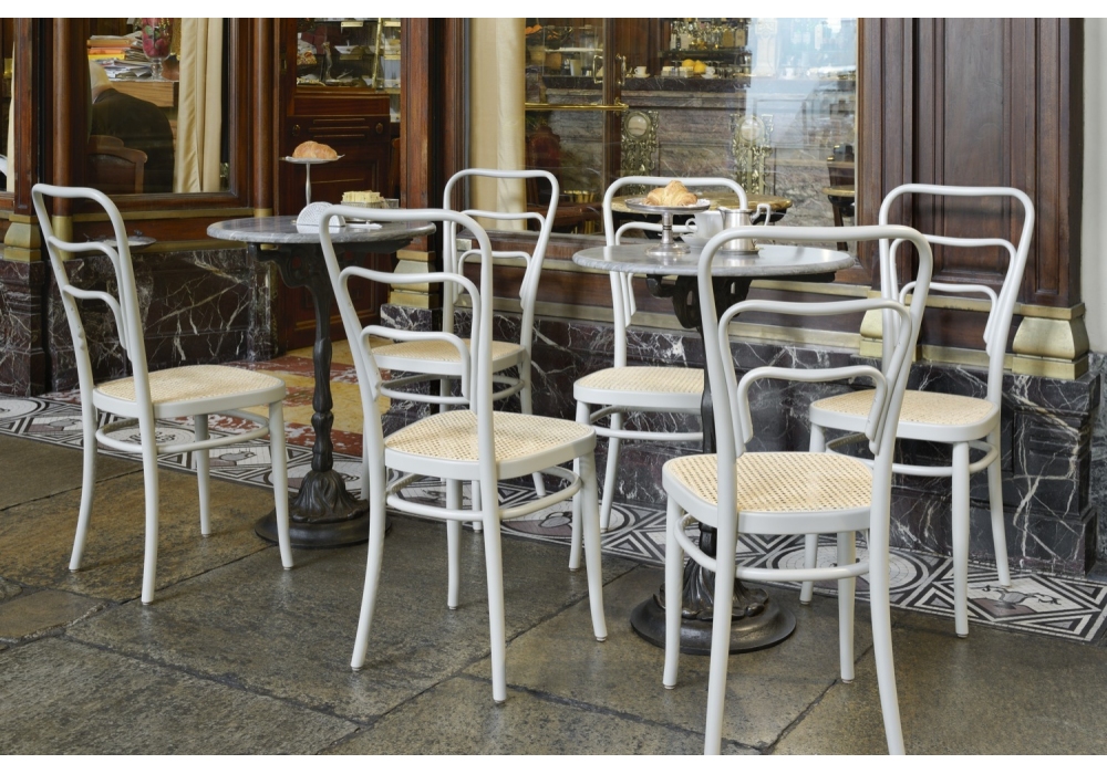 Vienna 144 conçue par Gebrüder Thonet Vienna est réalisée en hêtre courbé, disponible en différentes finitions. Assise en contreplaqué gaufré ou paille de Vienne.