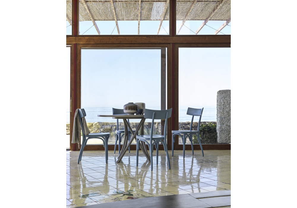 Czech conçue par Hermann Czech pour Gebrüder Thonet Vienna est une chaise en hêtre courbé disponible en différentes finitions, avec ou sans accoudoirs. La version laquée est également disponible avec ou sans mi-bas en hêtre naturel.