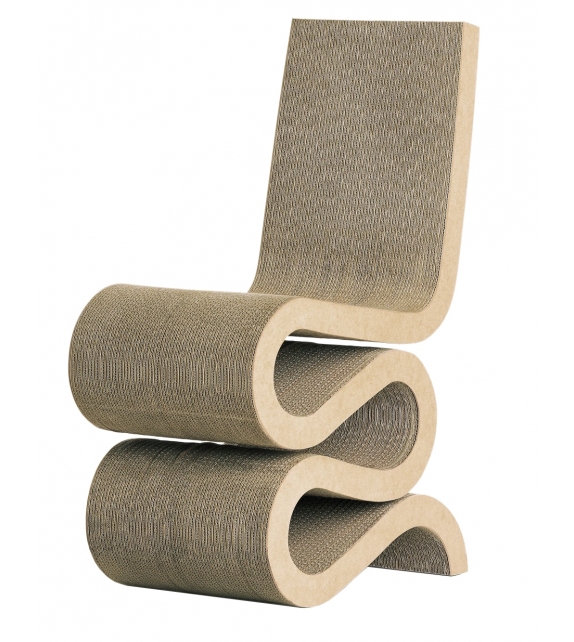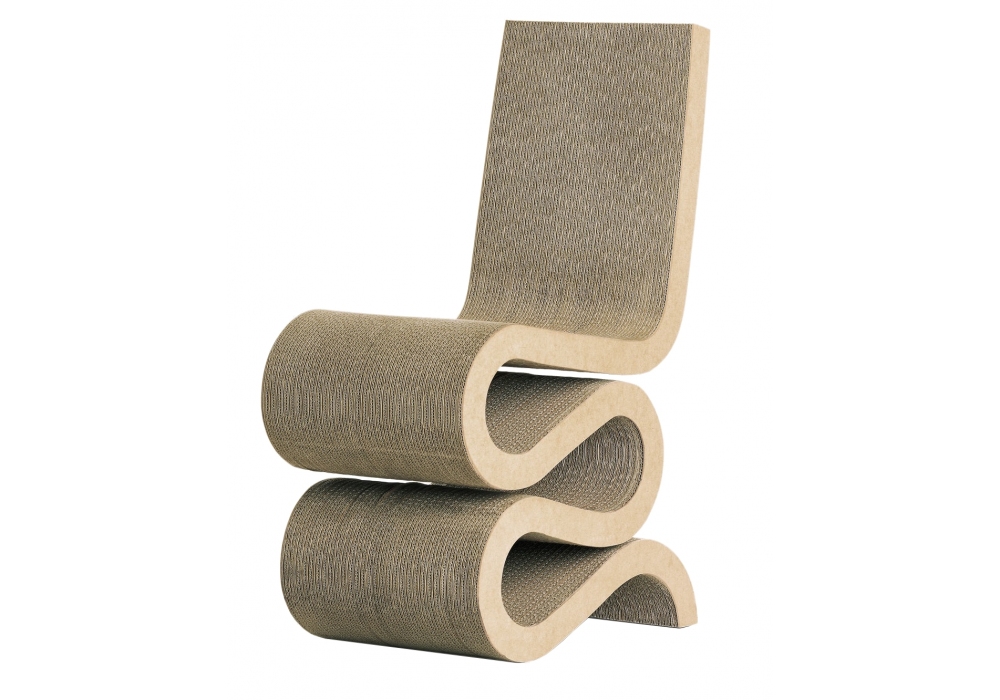 Vitra Wiggle side chair chaise: Frank Gehry est célèbre pour son utilisation de matériaux inhabituels. En créant la série de meubles „Easy Edges”, il a conféré une nouvelle dimension esthétique à un matériau aussi banal que le carton.