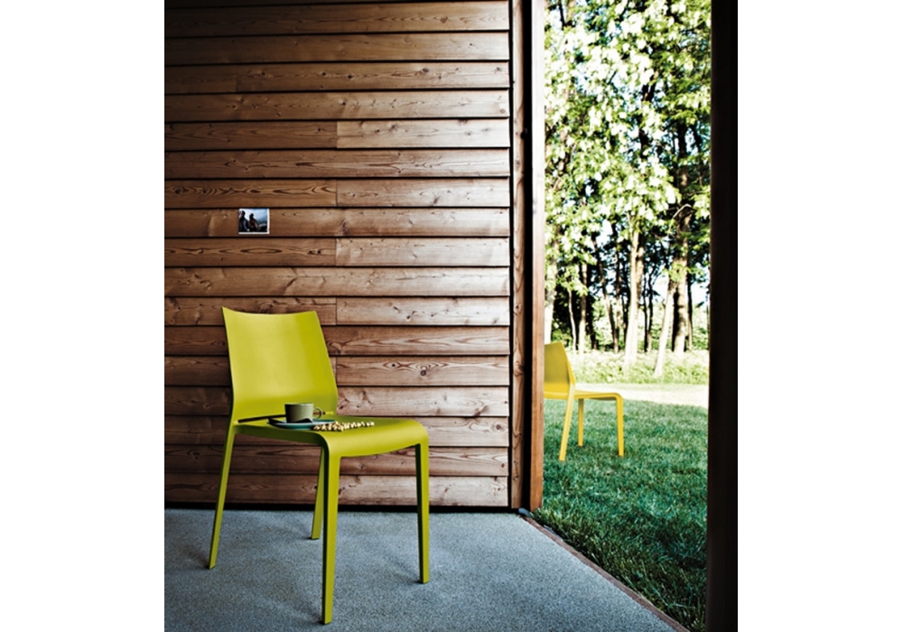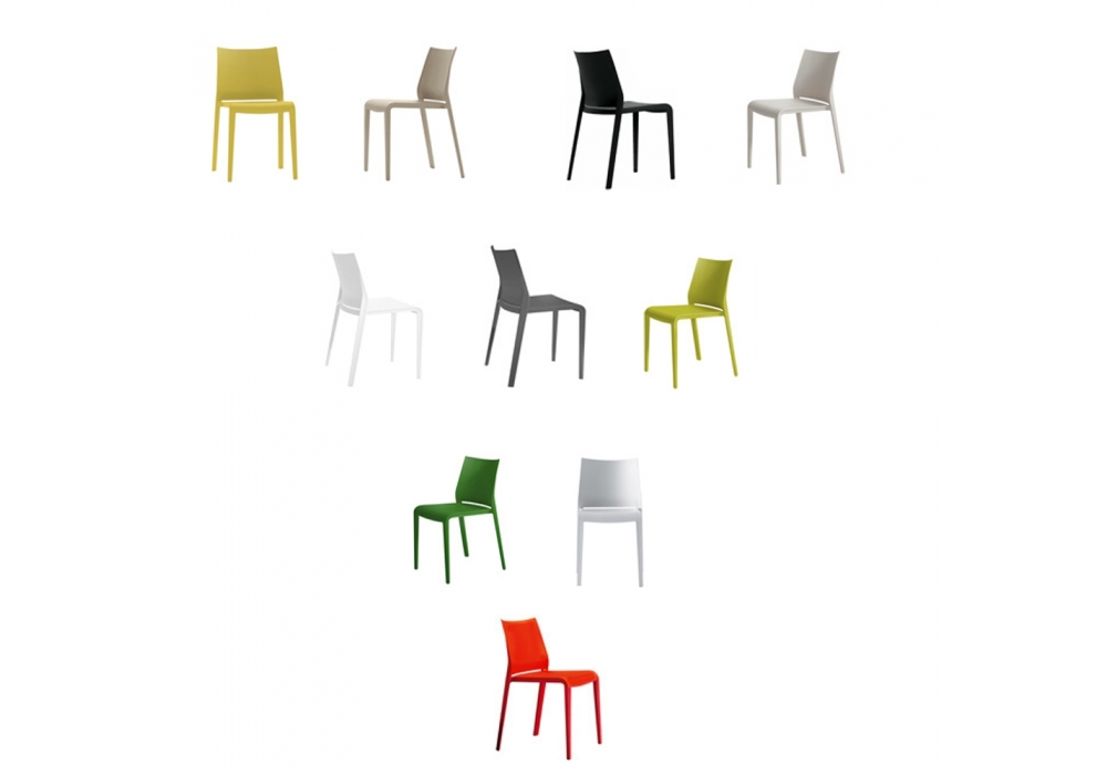 Riga 545 conçue par Pocci e Dondoli pour Desalto est une chaise réalisée en polypropylène chargé de fibre de verre. Disponible en différentes finitions et en version interne ou externe.