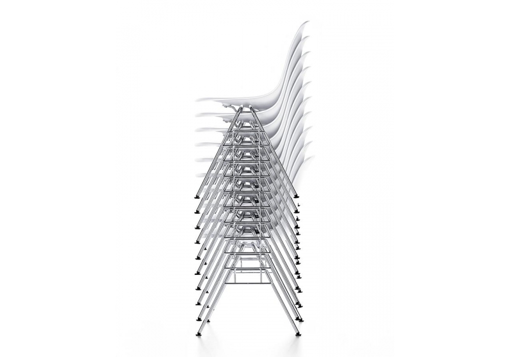 Eames Plastic Side Chair DSS:  piètement en tube d‘acier, chromé. DSS avec élément de liaison de rangées. (DSS = Dining Height Side Chair Stacking Base).