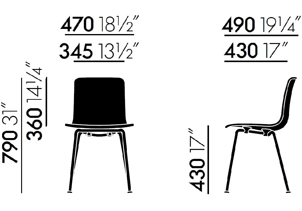 HAL RE Tube conçue par Jasper Morrison pour Vitra est une chaise avec base en tube d'acier à quatre pieds, non empilable, chromée ou peinte en poudre de couleur ivoire ou basic dark. Coque en polypropylène recyclé teint dans la masse. Disponible en différentes finitions.