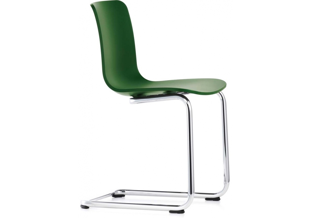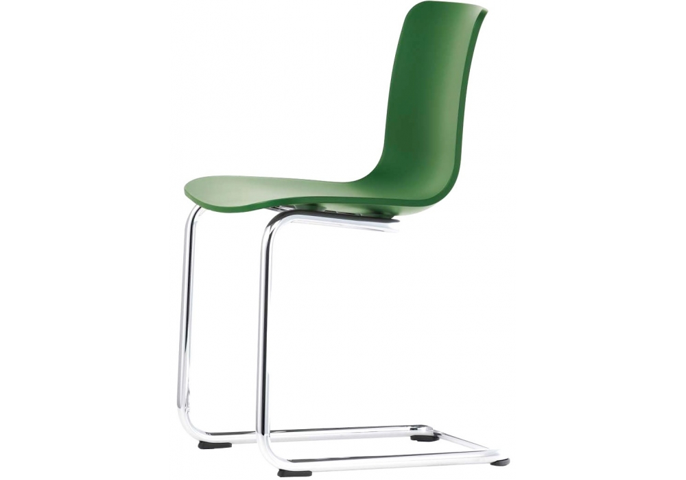 HAL RE Cantilever conçue par Jasper Morrison pour Vitra est une chaise avec piètement luge en tube d'acier chromé, non empilable et coque en polypropylène recyclé teint dans la masse.