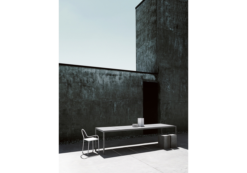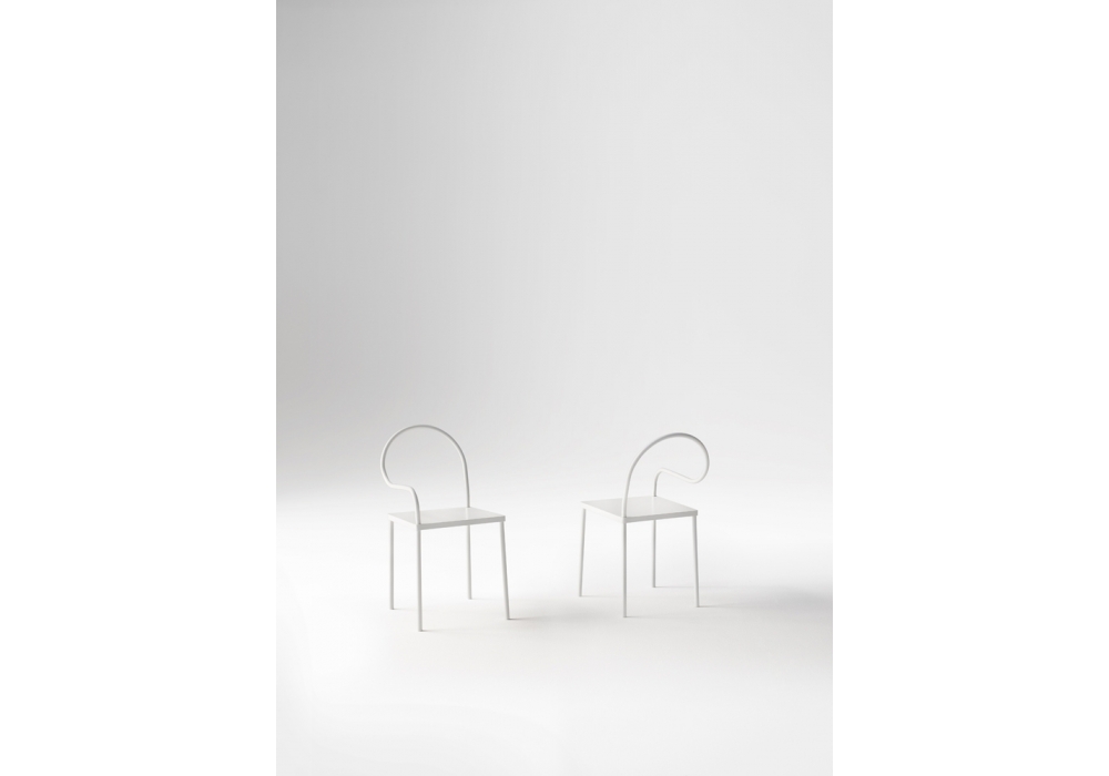 Softer Than Steel 695 conçue par Nendo pour Desalto est une chaise avec structure en tube d'acier et assise en tôle d'acier. Disponible en différentes finitions.