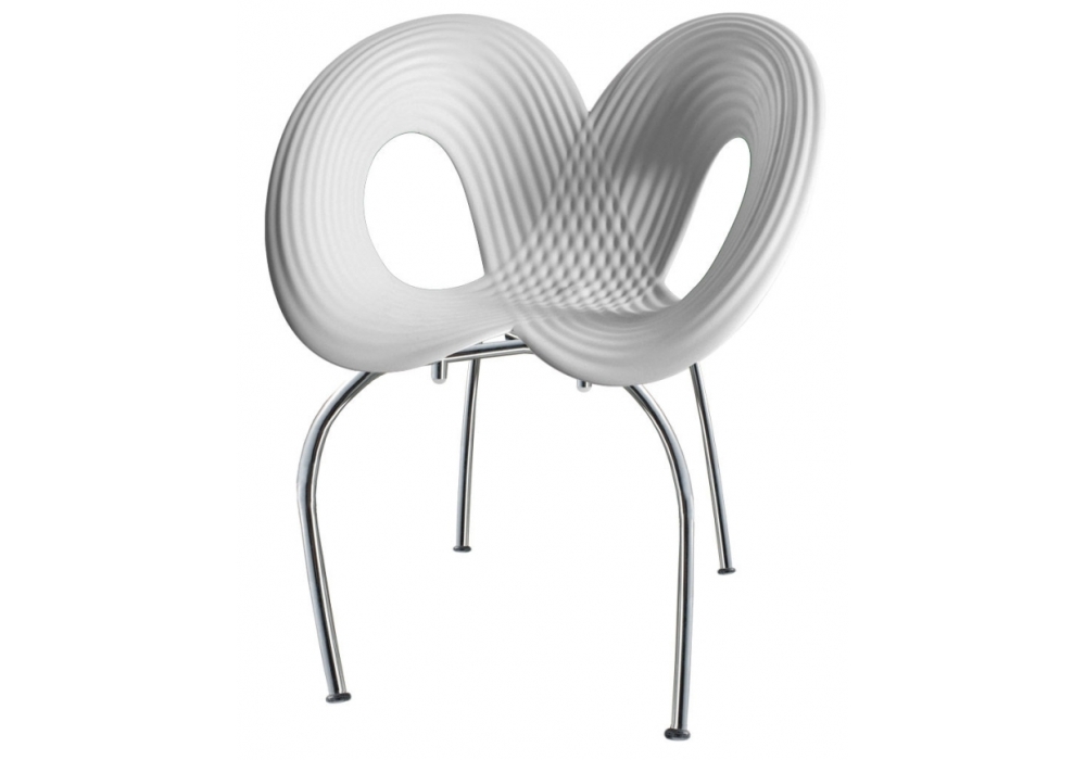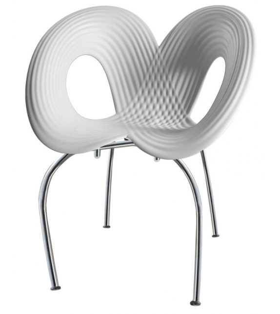 Rippler conçue par Ron Arad pour Moroso est une chaise avec coque en polypropylène moulé et base en tube d'acier thermolaqué ou en acier inoxydable. Semelles intérieures en polyéthylène.
