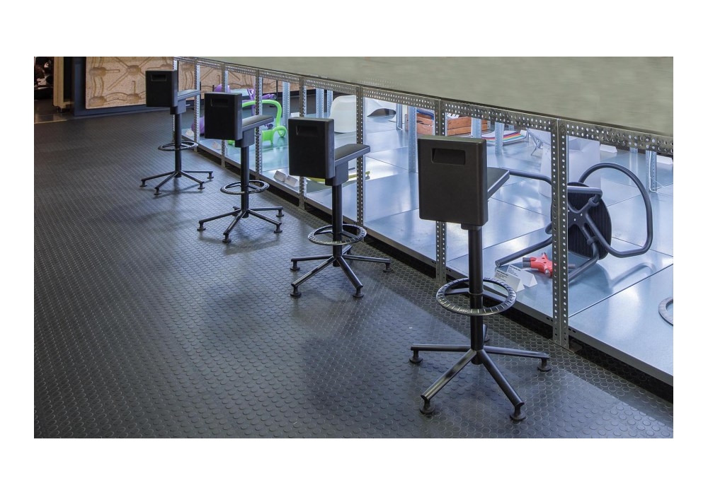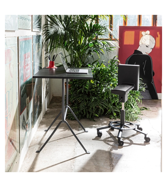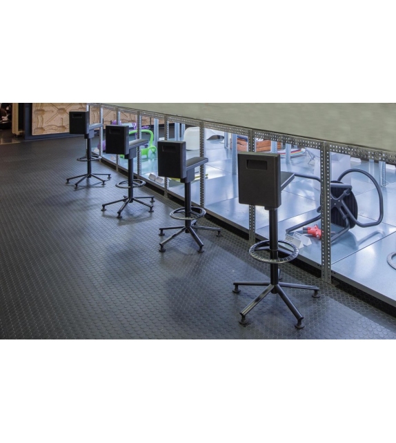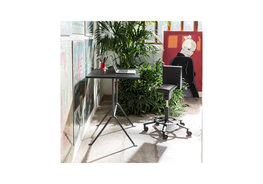 360° Chair conçue par Konstantin Grcic pour Magis est une chaise pivotante sur roulettes. Réglable en hauteur avec piston à gaz, structure en acier peint à la résine époxy. Repose-pieds en aluminium moulé sous pression. Assise en polyuréthane intégral autoportant.
