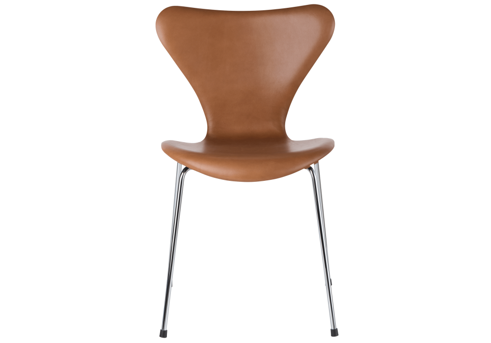 Series 7 conçue par Arne Jacobsen pour Fritz Hansen est une chaise réalisée avec une coque entièrement recouverte de tissu ou de cuir et des pieds en tube d'acier chromé ou thermolaqué. Disponible en différentes finitions.