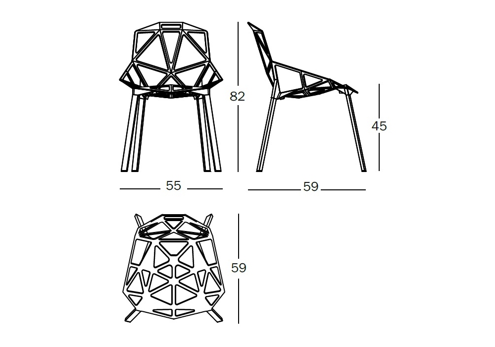 Chair_One conçue par Konstantin Grcic pour Magis est une chaise empilable, également adaptée à une utilisation en extérieur. Pieds en profilés d'aluminium peints et assise en aluminium moulé sous pression avec traitement au titane fluoré et peint en polyester. Sur demande, il est possible d'ajouter le coussin d'assise.