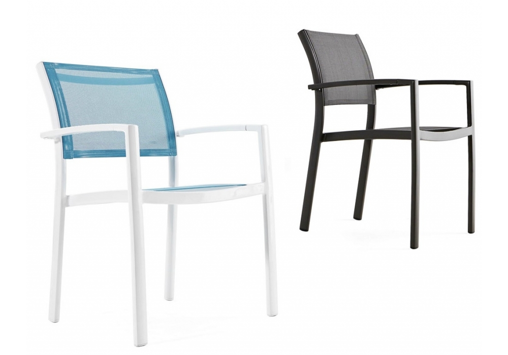 Victor, designed by R & S for Varaschin, is a chair with powder coated aluminium frame, seat and backrest in batyline.