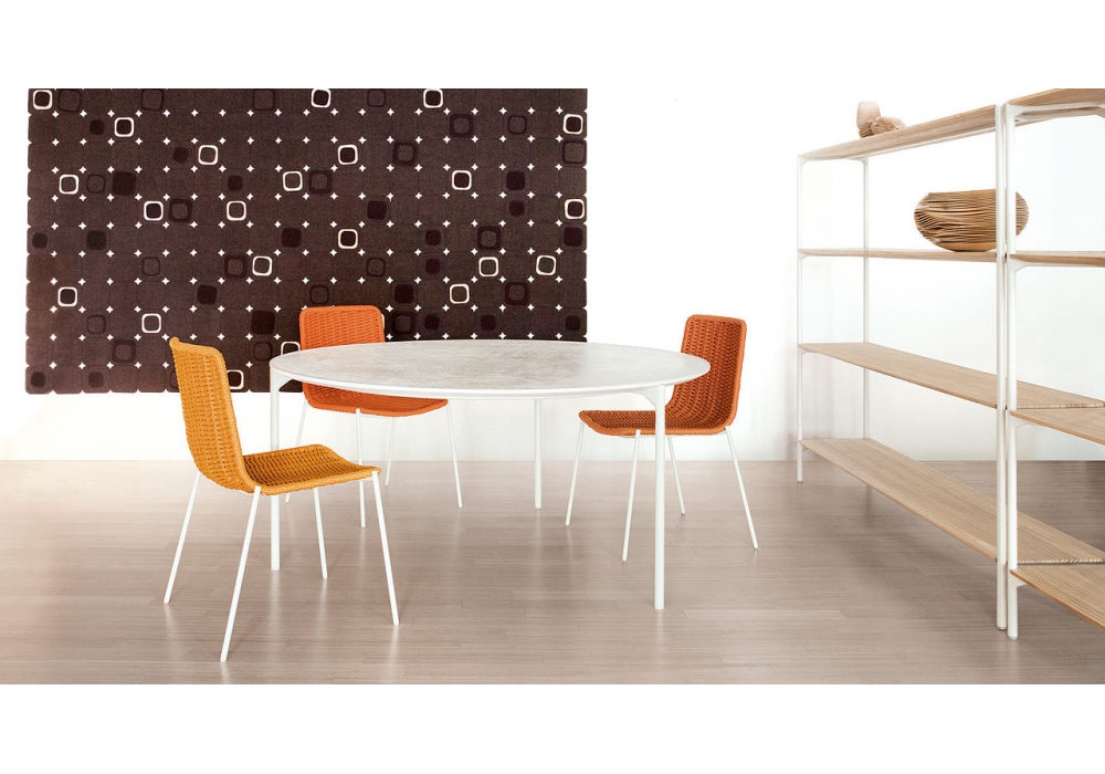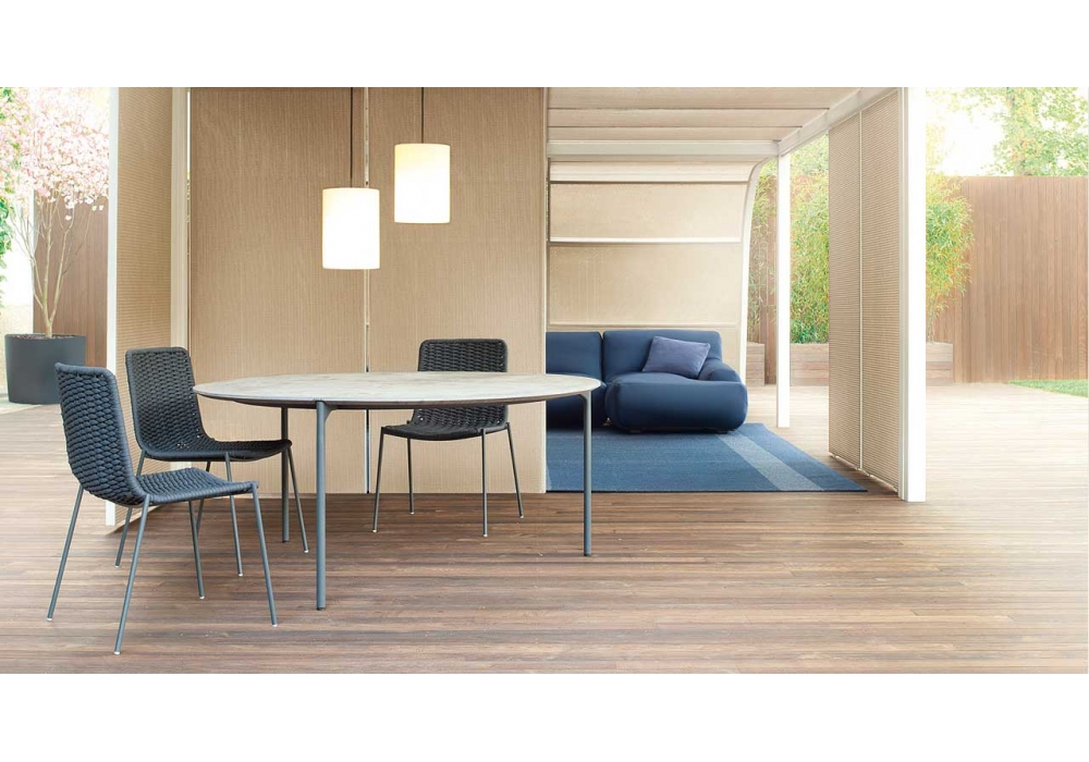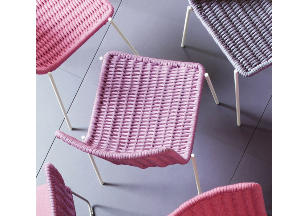 Kiti conçue par Francesco Rota pour Paola Lenti est une chaise avec structure en acier inoxydable peint mat ou brillant, de différentes couleurs. Housse fixe tissée à la main disponible en corde ou en corde Aquatech. Sur demande, il est possible de combiner un matelas amovible dans différents tissus et couleurs.