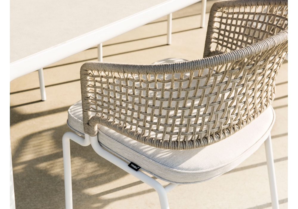 CTR conçue par Piergiorgio Cazzaniga for Tribù est une chaise avec le cadre en en acier inoxydable peint en poudre et le siège avec tissage dans Tricord (polyoléfine). Le tissage est disponible en deux couleurs: linen et wengé.
