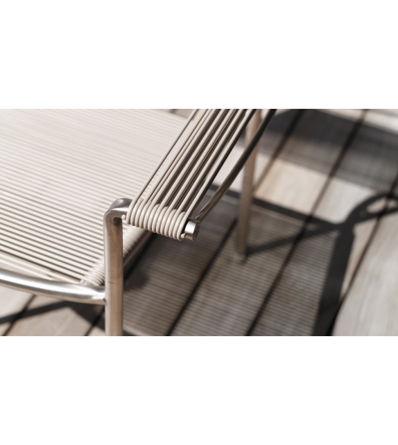 Green PVC 201 conçu par Giandomenico Belotti pour Alias est une chaise d'extérieur avec accoudoirs. Il est composé d'une structure en acier inoxydable brossé, d'une assise et d'un dossier en PVC Ø5 mm. Disponible en différentes finitions.
