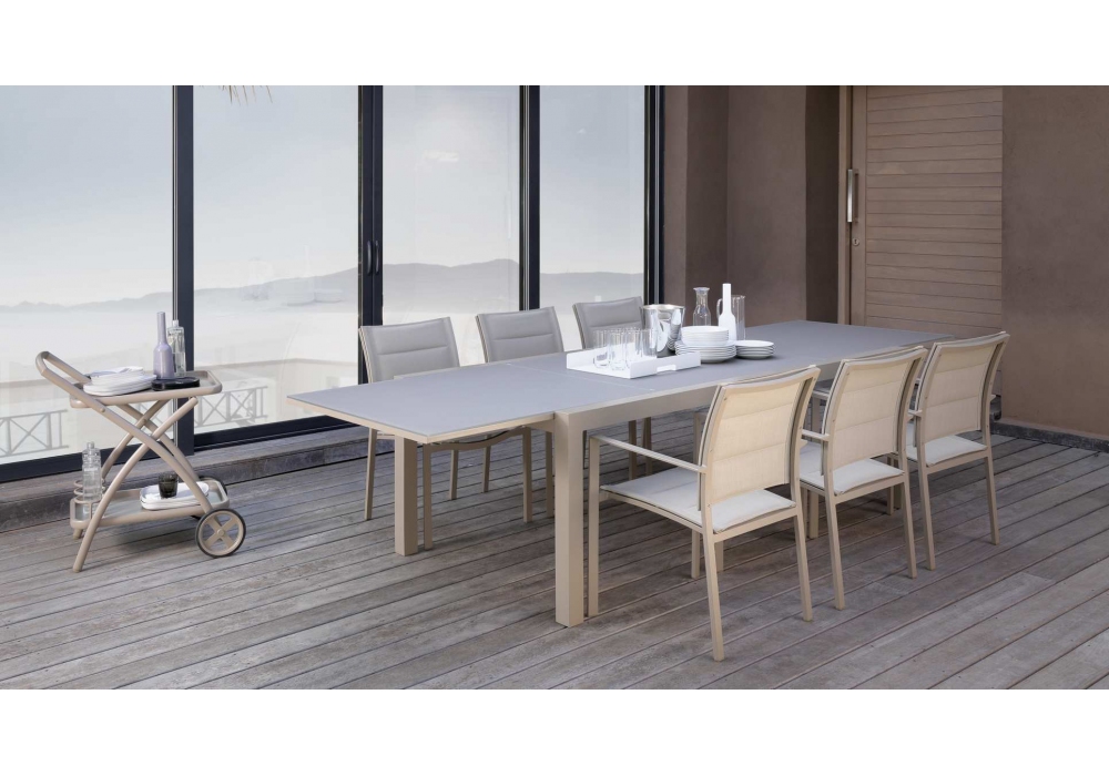 Touch conçue pour Talenti est une chaise d'extérieur avec structure en aluminium et assise en textilène disponible en quatre finitions.