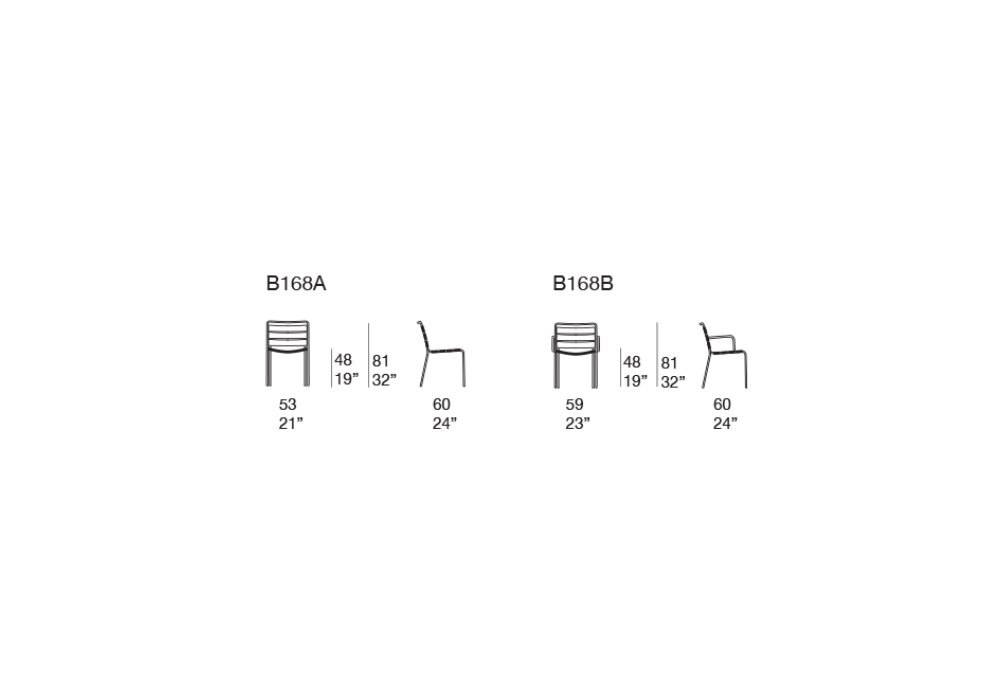 | Dimensions | 53 x 60 x H 48/81 cm (B168A); 59 x 60 x H 48/81 cm (B168B). |