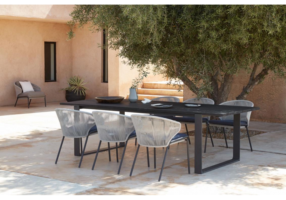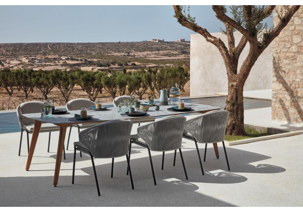 Radius conçu par Stephane De Winter pour Manutti est un petit fauteuil réalisé avec une structure en acier inoxydable et une corde tressée. Rembourrage des coussins en tissu. Disponible en différentes finitions.