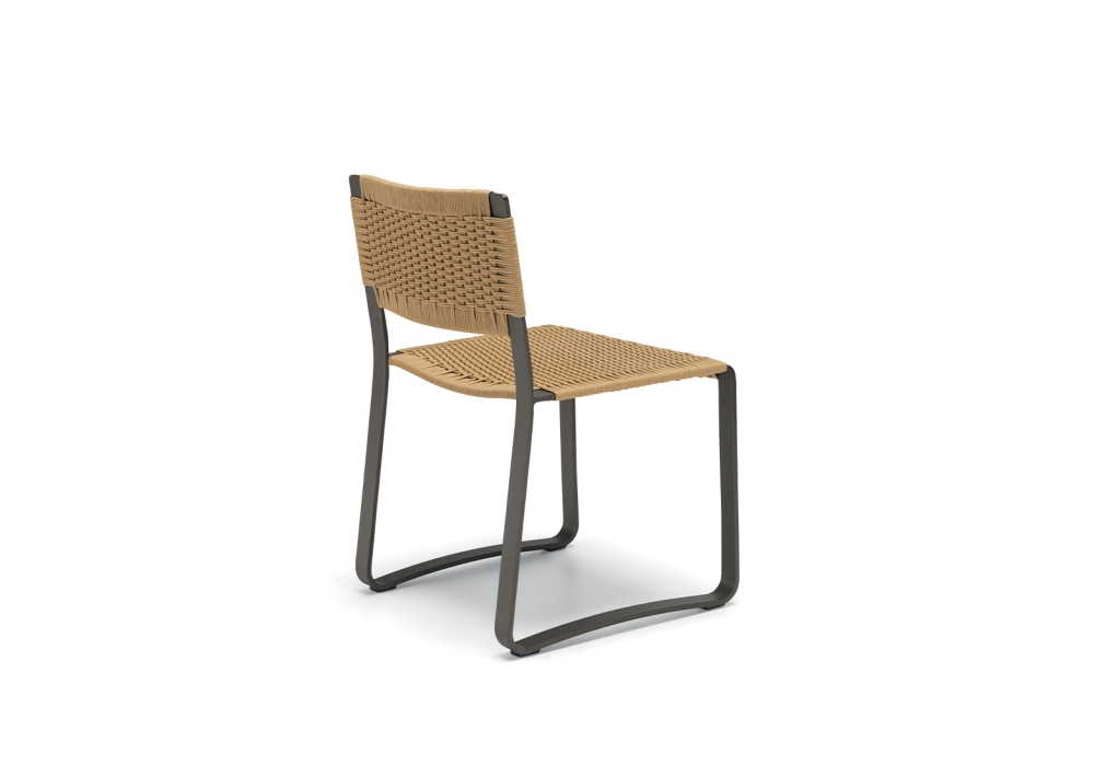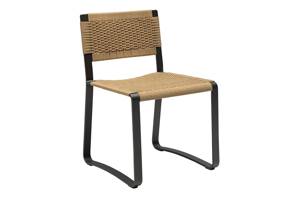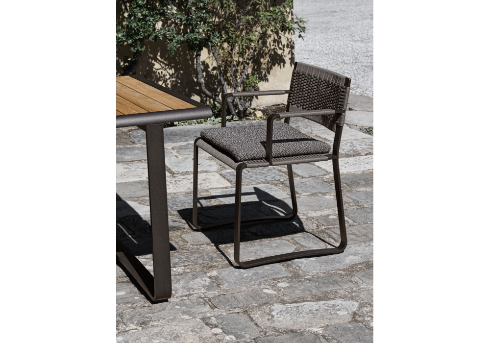 Green Point conçue par Vincent Van Duysen pour Molteni&C est une chaise avec ou sans accoudoirs réalisée avec une structure en métal bruni et une assise et un dossier en corde tressée. Coussin d'assise sur demande.