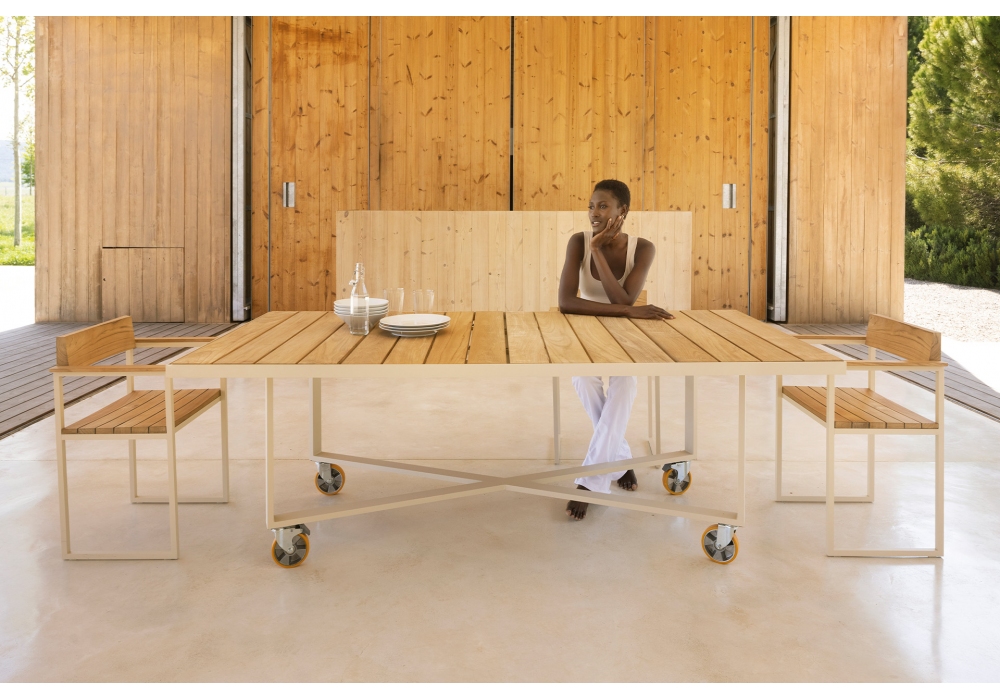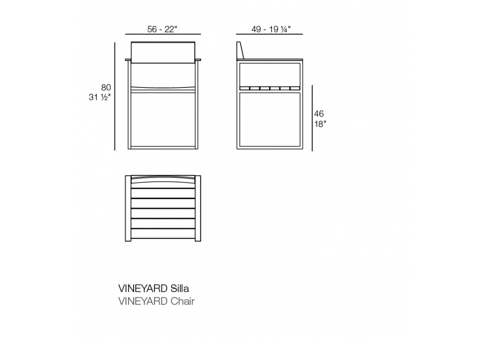 Vineyard conçue par Ramón Esteve pour Vondom est une chaise réalisée avec une structure en aluminium et une assise et un dossier en bois. Disponible en différentes finitions. Coussin d'assise sur demande.