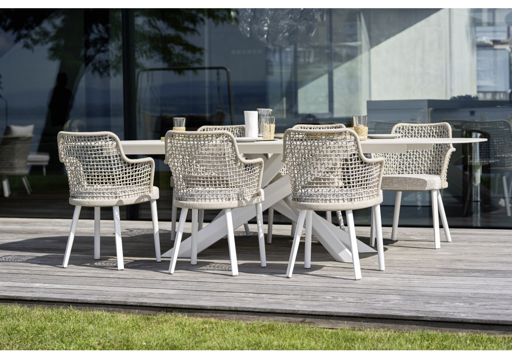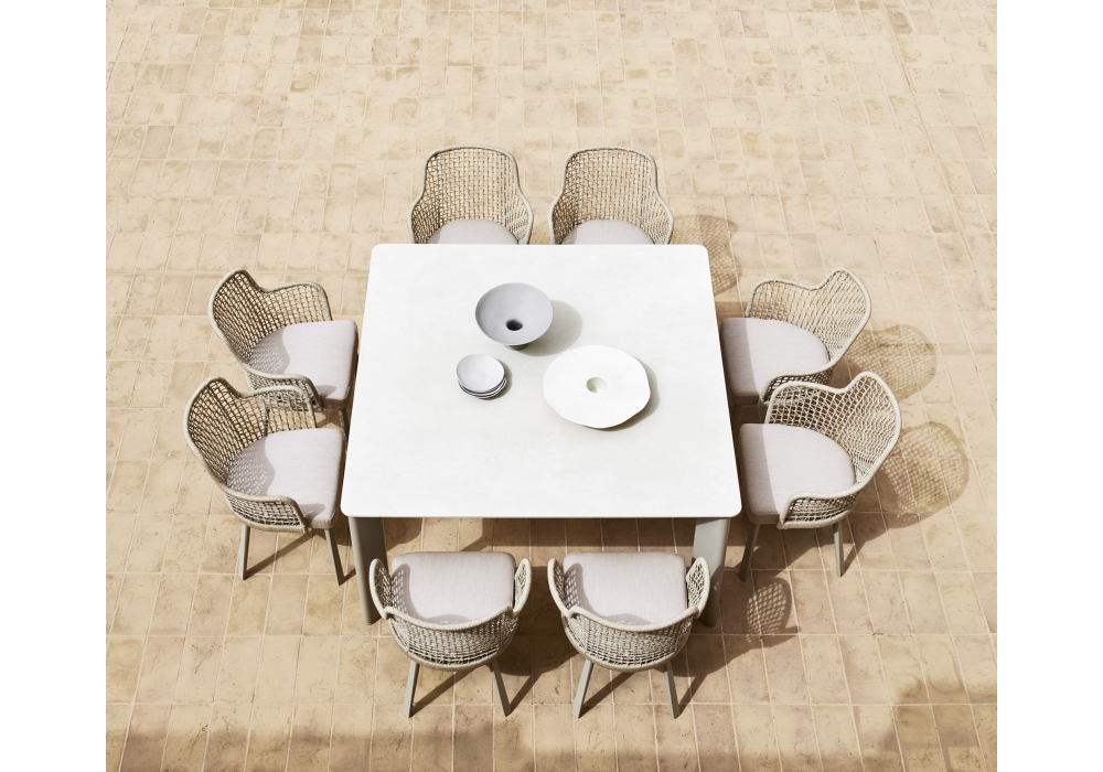 Emma conçu par Monica Armani pour Varaschin est un fauteuil d'extérieur avec pieds en aluminium ou en iroko massif. Assise rembourrée en tissu avec structure d'assise en polypropylène. Dossiers avec cadres entrelacés en aluminium thermolaqué ou en contreplaqué pour l'extérieur et recouverts de tissu. Disponible en différentes finitions.