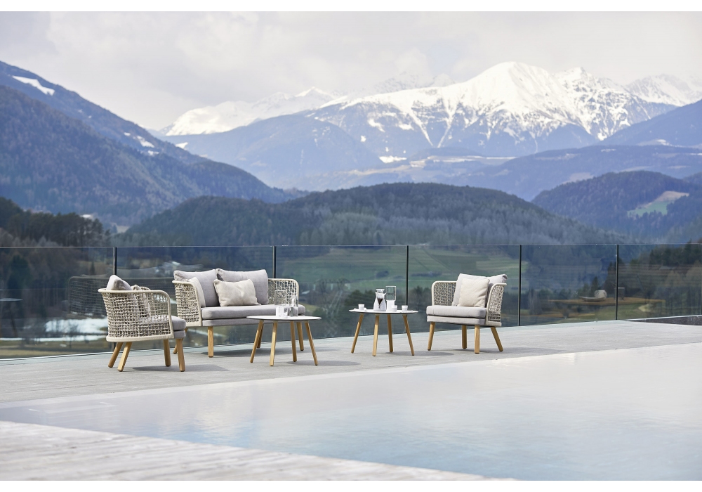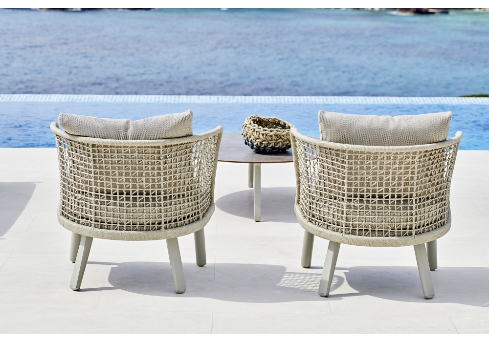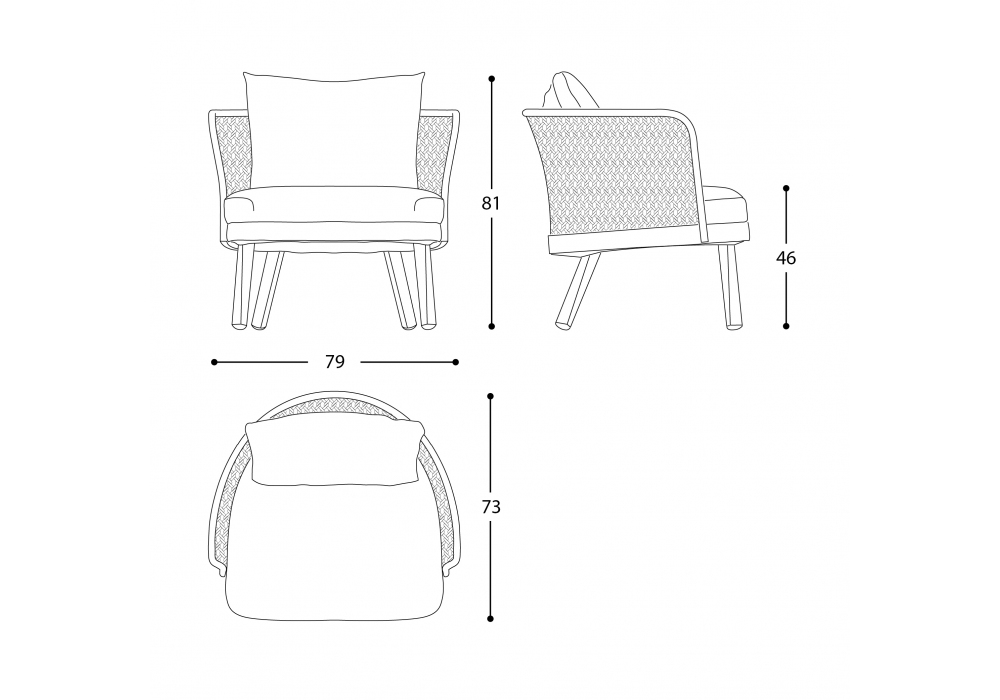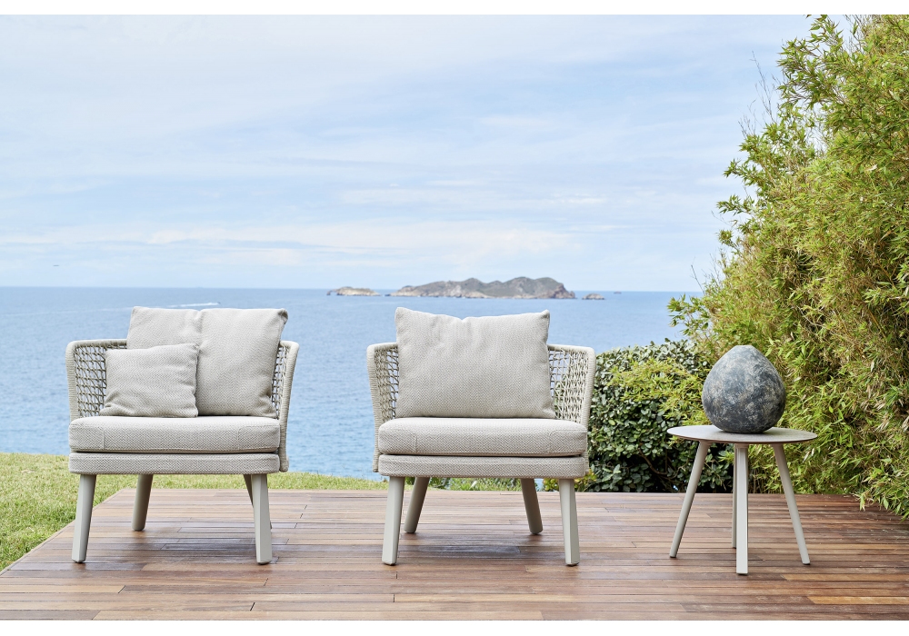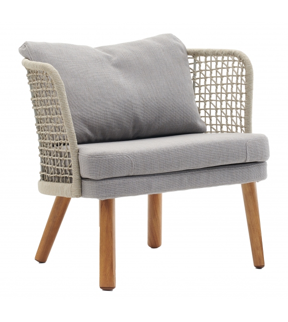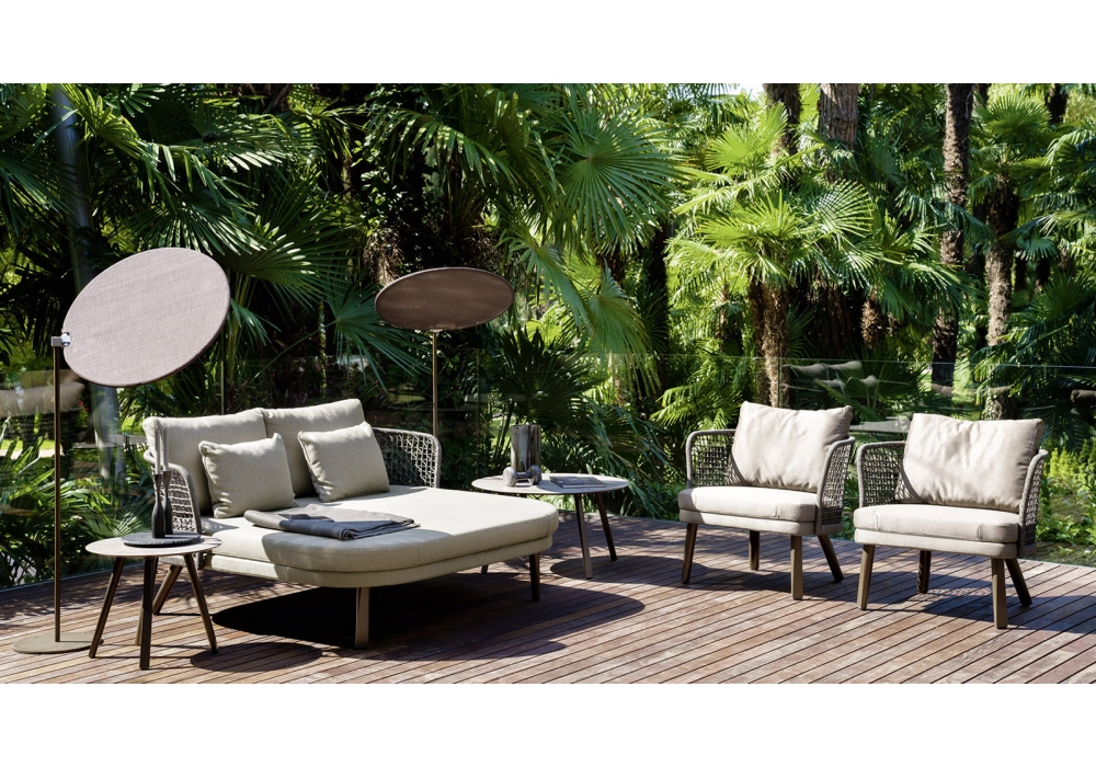 Emma conçu par Monica Armani pour Varaschin est un fauteuil d'extérieur avec pieds en aluminium ou en iroko massif. Assise rembourrée en tissu avec structure d'assise en polypropylène. Dossiers avec cadres entrelacés en aluminium thermolaqué ou en contreplaqué pour l'extérieur et recouverts de tissu. Disponible en différentes finitions.