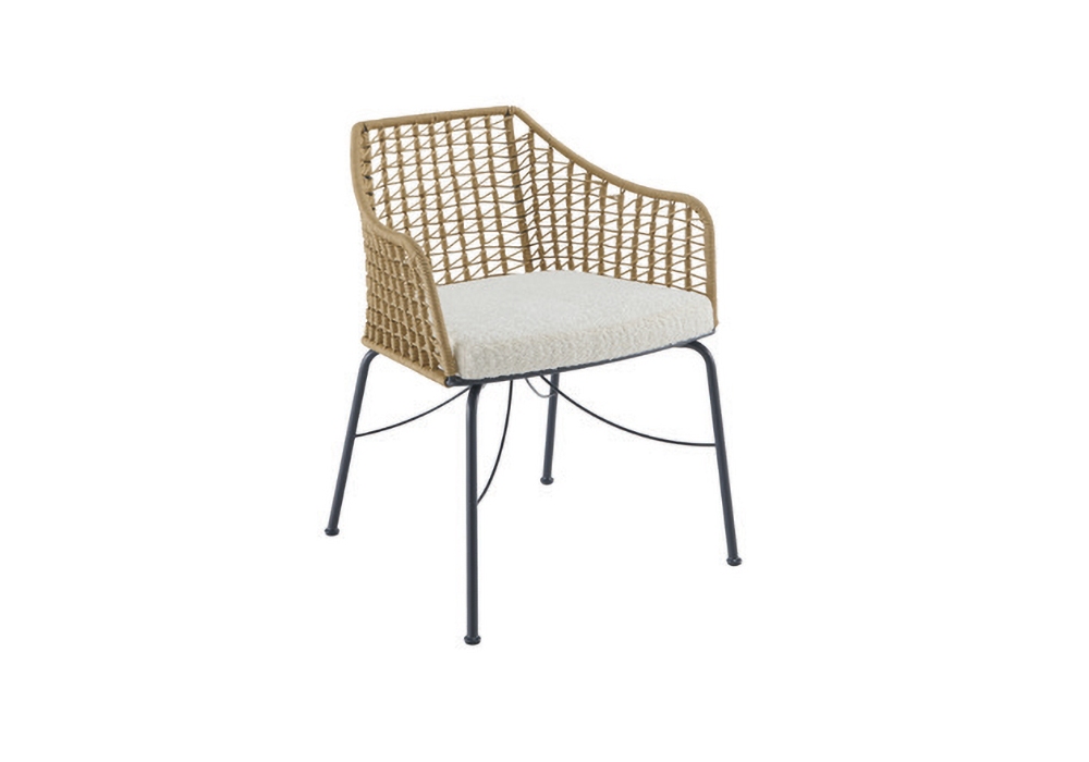 Soleil conçue par Riflessi est une chaise d'extérieur avec structure en métal peint et structure en corde de différentes dimensions.