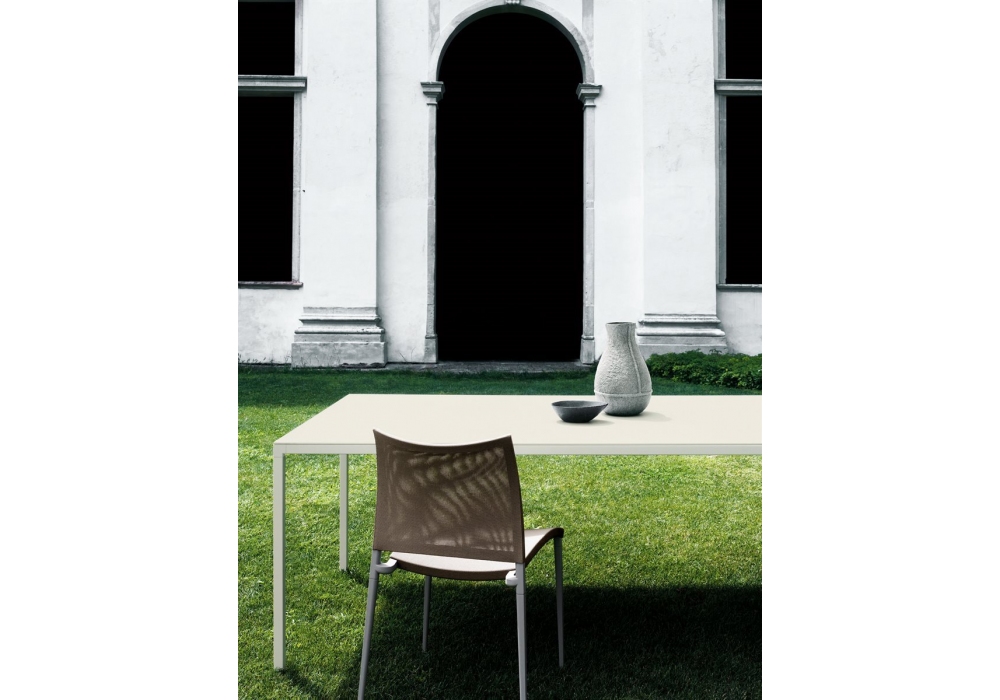 Sand Air Outdoor conçue par Pocci e Dondoli pour Desalto est une chaise empilable avec structure en aluminium moulé sous pression. Assise et dossier en maille polyester recouverte de PVC (dans la version Canatex la maille est recouverte de PVC et de chanvre). Disponible en différentes finitions et dans la version avec ou sans accoudoirs.