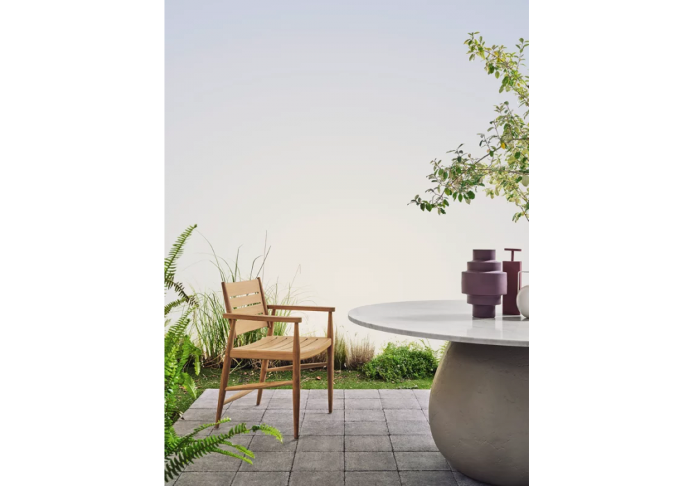 Eidos conçue par Gabriele & Oscar Buratti pour Gervasoni est une chaise avec accoudoirs en teck.