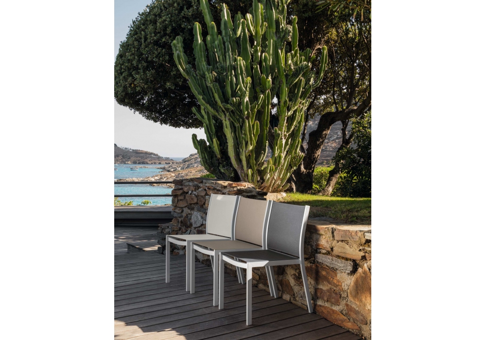 Minorca conçue par Talenti est une chaise réalisée en aluminium, revêtement en tissu. Disponible en différentes finitions.